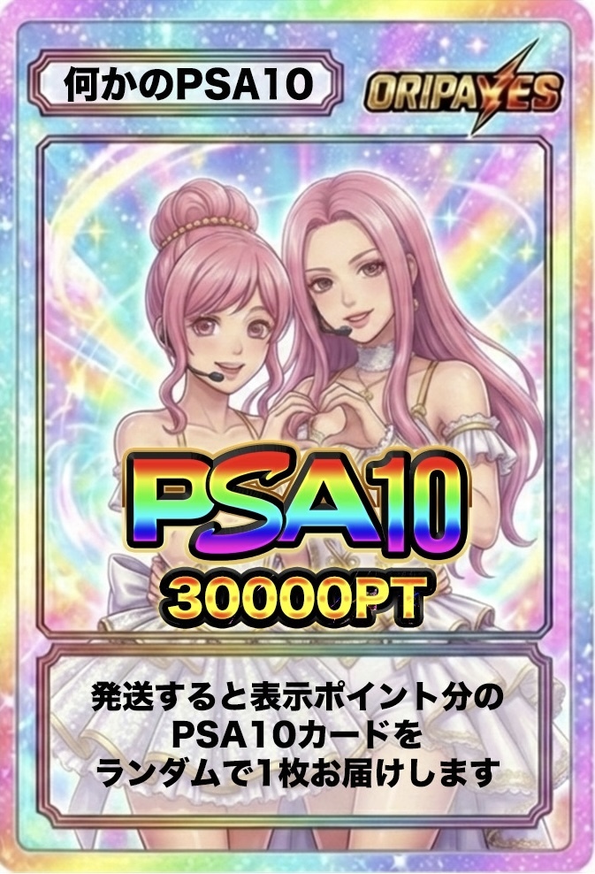 商品をポイントに変換してしまうと発送が出来なくなってしまいます。あらかじめご了承ください。 ポイントに傷ありカード・ケースについて オリパから排出されるカードおよび鑑定済みカード(ケース付き)には、傷やスレなどが見られる場合がございます。あらかじめご了承ください。 鑑定済みカード(PSA)について 鑑定済みカード(PSA)は、鑑定機関が付与したグレードを基準として販売しております。ケース内部の傷、異物、初期キズ等につきましては、クレーム・返品・交換の対象外となります。 未開封品の状態について 未開封品であっても、外箱の傷・凹み、シュリンクの破れやヨレ、シール跡などが見られる場合がございます。 また、BOX商品の再シュリンクの可能性を完全に排除することはできません。 商品到着後は、梱包状態が未開封であることが分かる状態から開封までを動画で撮影していただくことを推奨しております。動画内で偽造品であると確認できた場合のみ、返品・交換の対応をさせていただきます。 商品画像について 掲載している商品画像はイメージとなります。実際に排出されるカードの状態や内容を保証するものではございません。掲載されていないカードが排出される場合もございます。 販売個数表示について バナー等に表示されている販売個数は、販売開始時点での数を示しております。購入時点での残り販売数を示すものではございません。 総還元率について 総還元率は、オリパをすべて引いた場合の理論上の数値となります。 排出されるポイント額について 抽選により獲得できるカードの設定ポイント額はランダムとなっており、すべての抽選において1口あたりの設定ポイント額を保証するものではありません。 返品・交換について 商品の性質上、原則として返品・交換・返金には対応しておりません。 販売終了について 商品は予告なく販売を終了する場合がございます。 演出動画について 電波状況、端末、OSの環境によっては演出動画が正常に表示されない場合があります。その場合でも抽選結果および景品の排出には影響ございません。なお、利用したポイントの返還、商品交換、返金等には対応いたしかねます。 エディション表記のある商品の取り扱いについて エディション表記のある商品につきましては、番号の指定や保証はできません。あらかじめご了承ください。