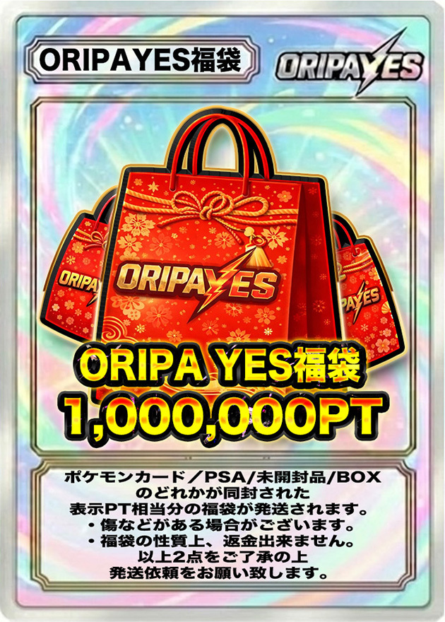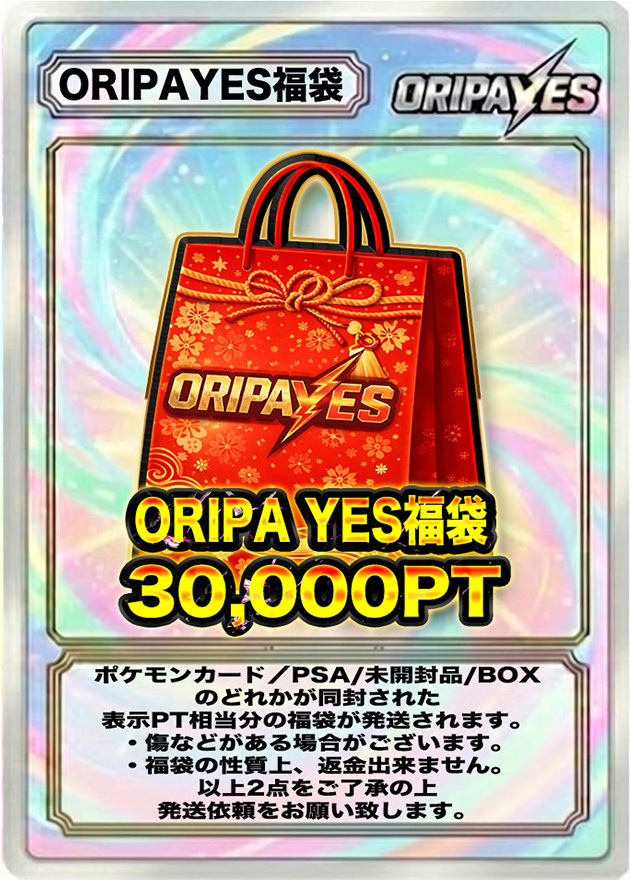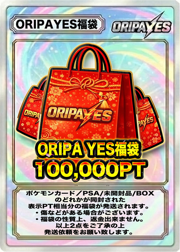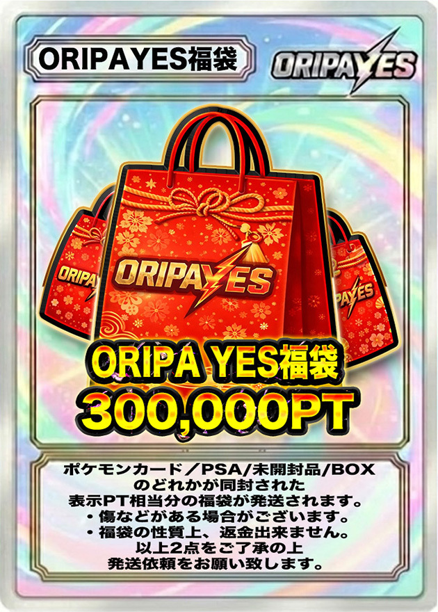 ポイント表記は弊社の基準で設定されたおります。 あらかじめご了承ください。 商品をポイントに変換してしまうと発送が出来なくなってしまいます。あらかじめご了承ください。 ポイントに傷ありカード・ケースについて オリパから排出されるカードおよび鑑定済みカード(ケース付き)には、傷やスレなどが見られる場合がございます。あらかじめご了承ください。 鑑定済みカード(PSA)について 鑑定済みカード(PSA)は、鑑定機関が付与したグレードを基準として販売しております。ケース内部の傷、異物、初期キズ等につきましては、クレーム・返品・交換の対象外となります。 未開封品の状態について 未開封品であっても、外箱の傷・凹み、シュリンクの破れやヨレ、シール跡などが見られる場合がございます。 また、BOX商品の再シュリンクの可能性を完全に排除することはできません。 商品到着後は、梱包状態が未開封であることが分かる状態から開封までを動画で撮影していただくことを推奨しております。動画内で偽造品であると確認できた場合のみ、返品・交換の対応をさせていただきます。 商品画像について 掲載している商品画像はイメージとなります。実際に排出されるカードの状態や内容を保証するものではございません。掲載されていないカードが排出される場合もございます。 販売個数表示について バナー等に表示されている販売個数は、販売開始時点での数を示しております。購入時点での残り販売数を示すものではございません。 総還元率について 総還元率は、オリパをすべて引いた場合の理論上の数値となります。 排出されるポイント額について 抽選により獲得できるカードの設定ポイント額はランダムとなっており、すべての抽選において1口あたりの設定ポイント額を保証するものではありません。 返品・交換について 商品の性質上、原則として返品・交換・返金には対応しておりません。 販売終了について 商品は予告なく販売を終了する場合がございます。 演出動画について 電波状況、端末、OSの環境によっては演出動画が正常に表示されない場合があります。その場合でも抽選結果および景品の排出には影響ございません。なお、利用したポイントの返還、商品交換、返金等には対応いたしかねます。 エディション表記のある商品の取り扱いについて エディション表記のある商品につきましては、番号の指定や保証はできません。あらかじめご了承ください。
