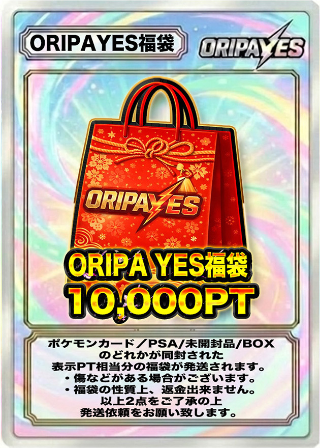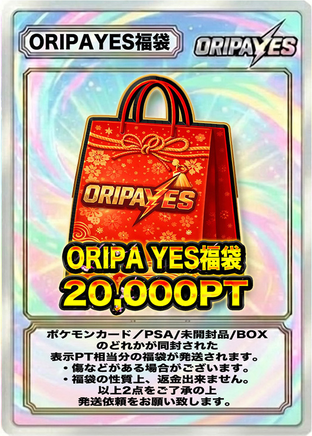 ポイント表記は弊社の基準で設定されたおります。 あらかじめご了承ください。 商品をポイントに変換してしまうと発送が出来なくなってしまいます。あらかじめご了承ください。 ポイントに傷ありカード・ケースについて オリパから排出されるカードおよび鑑定済みカード(ケース付き)には、傷やスレなどが見られる場合がございます。あらかじめご了承ください。 鑑定済みカード(PSA)について 鑑定済みカード(PSA)は、鑑定機関が付与したグレードを基準として販売しております。ケース内部の傷、異物、初期キズ等につきましては、クレーム・返品・交換の対象外となります。 未開封品の状態について 未開封品であっても、外箱の傷・凹み、シュリンクの破れやヨレ、シール跡などが見られる場合がございます。 また、BOX商品の再シュリンクの可能性を完全に排除することはできません。 商品到着後は、梱包状態が未開封であることが分かる状態から開封までを動画で撮影していただくことを推奨しております。動画内で偽造品であると確認できた場合のみ、返品・交換の対応をさせていただきます。 商品画像について 掲載している商品画像はイメージとなります。実際に排出されるカードの状態や内容を保証するものではございません。掲載されていないカードが排出される場合もございます。 販売個数表示について バナー等に表示されている販売個数は、販売開始時点での数を示しております。購入時点での残り販売数を示すものではございません。 総還元率について 総還元率は、オリパをすべて引いた場合の理論上の数値となります。 排出されるポイント額について 抽選により獲得できるカードの設定ポイント額はランダムとなっており、すべての抽選において1口あたりの設定ポイント額を保証するものではありません。 返品・交換について 商品の性質上、原則として返品・交換・返金には対応しておりません。 販売終了について 商品は予告なく販売を終了する場合がございます。 演出動画について 電波状況、端末、OSの環境によっては演出動画が正常に表示されない場合があります。その場合でも抽選結果および景品の排出には影響ございません。なお、利用したポイントの返還、商品交換、返金等には対応いたしかねます。 エディション表記のある商品の取り扱いについて エディション表記のある商品につきましては、番号の指定や保証はできません。あらかじめご了承ください。