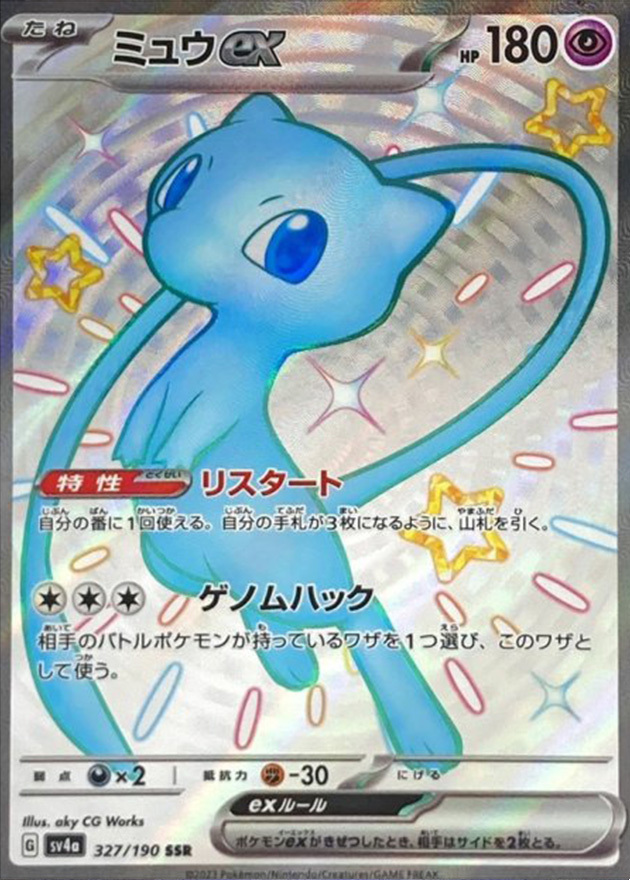 商品をポイントに変換してしまうと発送が出来なくなってしまいます。あらかじめご了承ください。 ポイントに傷ありカード・ケースについて オリパから排出されるカードおよび鑑定済みカード(ケース付き)には、傷やスレなどが見られる場合がございます。あらかじめご了承ください。 鑑定済みカード(PSA)について 鑑定済みカード(PSA)は、鑑定機関が付与したグレードを基準として販売しております。ケース内部の傷、異物、初期キズ等につきましては、クレーム・返品・交換の対象外となります。 未開封品の状態について 未開封品であっても、外箱の傷・凹み、シュリンクの破れやヨレ、シール跡などが見られる場合がございます。 また、BOX商品の再シュリンクの可能性を完全に排除することはできません。 商品到着後は、梱包状態が未開封であることが分かる状態から開封までを動画で撮影していただくことを推奨しております。動画内で偽造品であると確認できた場合のみ、返品・交換の対応をさせていただきます。 商品画像について 掲載している商品画像はイメージとなります。実際に排出されるカードの状態や内容を保証するものではございません。掲載されていないカードが排出される場合もございます。 販売個数表示について バナー等に表示されている販売個数は、販売開始時点での数を示しております。購入時点での残り販売数を示すものではございません。 総還元率について 総還元率は、オリパをすべて引いた場合の理論上の数値となります。 排出されるポイント額について 抽選により獲得できるカードの設定ポイント額はランダムとなっており、すべての抽選において1口あたりの設定ポイント額を保証するものではありません。 返品・交換について 商品の性質上、原則として返品・交換・返金には対応しておりません。 販売終了について 商品は予告なく販売を終了する場合がございます。 演出動画について 電波状況、端末、OSの環境によっては演出動画が正常に表示されない場合があります。その場合でも抽選結果および景品の排出には影響ございません。なお、利用したポイントの返還、商品交換、返金等には対応いたしかねます。 エディション表記のある商品の取り扱いについて エディション表記のある商品につきましては、番号の指定や保証はできません。あらかじめご了承ください。